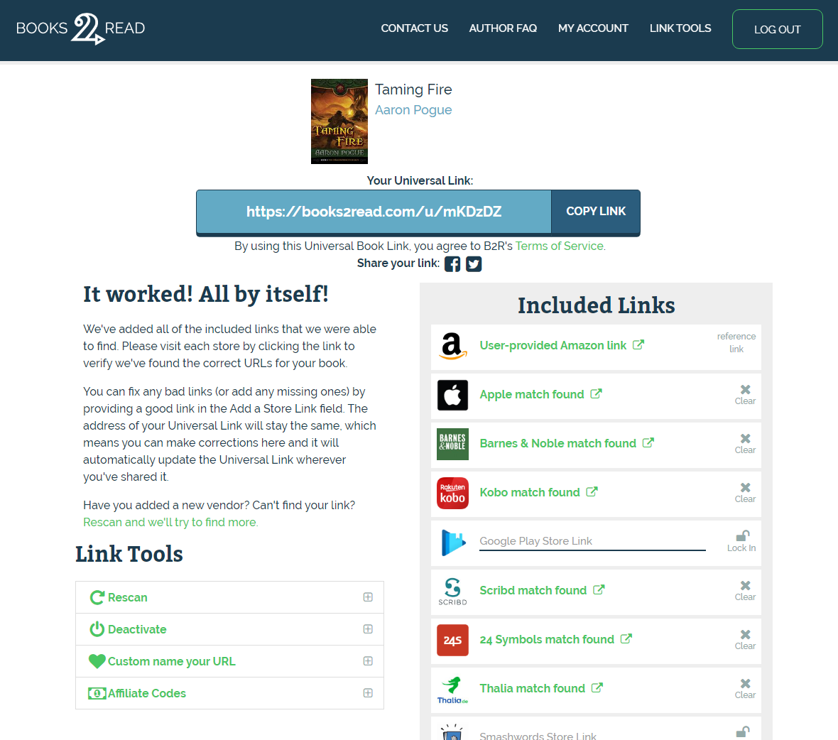 It’s even possible to “rescan” and repopulate your Universal Book Link with the most up-to-date information on where to purchase your ebook with just the click of a button.