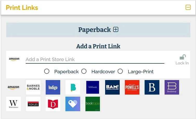 (As of 2022, you can add affiliate links from Amazon, Apple, Barnes & Noble, Kobo, Google Play, and Smashwords.)
